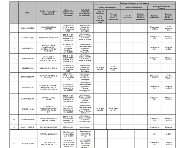 Se advierte que, en caso de no aportar pruebas dentro del plazo otorgado o bien de no desvirtuar los hechos consignados, se procederá conforme al cuarto párrafo del artículo 69-B del CFF, emitiéndose la resolución respectiva y publicándose en el portal del SAT y en el Diario Oficial de la Federación la relación definitiva de los contribuyentes que no lograron desvirtuar la presunción, en atención al interés público de combatir la facturación de operaciones inexistentes. etc